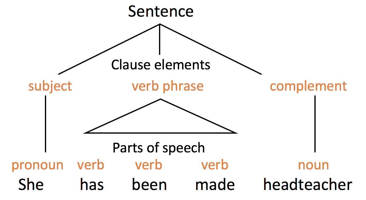 The difference can be shown by a tree diagram of the sentence She has been made headteacher: